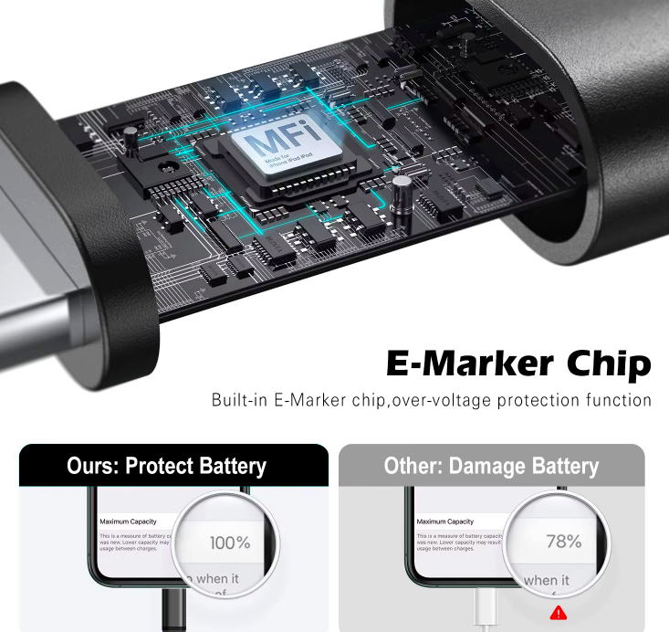 2. Lightning: The other end is Apple's proprietary Lightning connector, used on devices such as iPhones, iPads, and iPods